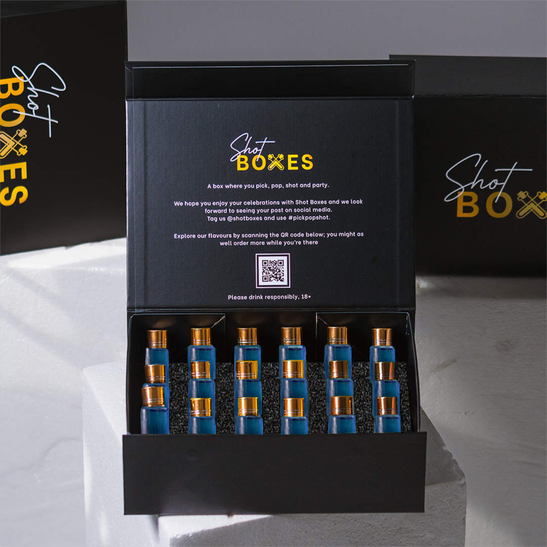 Surprise your special someone with our elegant gift box of delicious alcohol shots. Sure to delight and impress, they also make the perfect birthday or corporate gift - in fact almost any occasion! We'll include your custom greeting for the lucky recipient if it's a gift.
